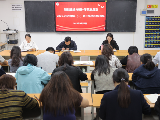 2025年9月28日下午,智能建造与设计学院于F108教室开展政治理论学习。会议由党总支副书记刘亚娟主持,院长李勇及全体教职工参加学习。
