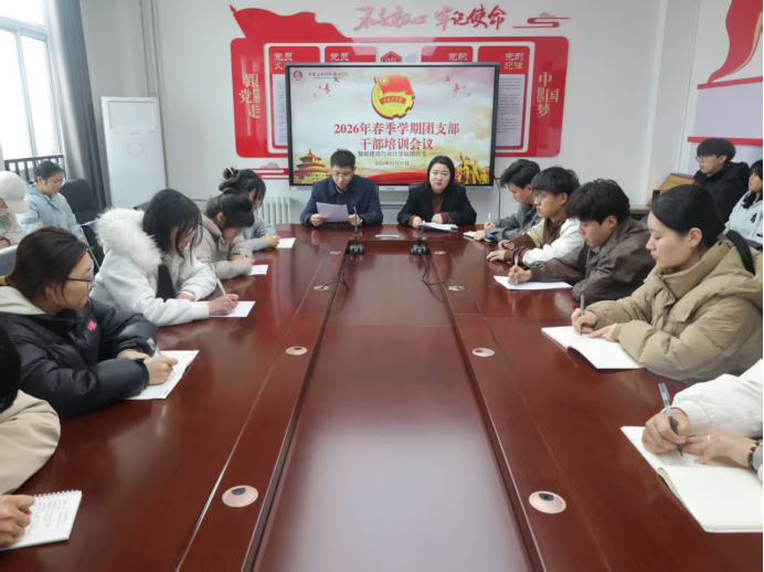 智能建造与设计学院于2026年3月11日在办公楼b417召开新学期团支书培训会议,智能建造与设计学院党总支副书记张蓄金、团总支书记王莹出席会议,全体团支书参会学习,会议由王莹主持。