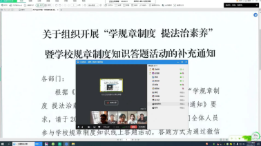 2022年4月21日下午,304am永利集团三个教研室分别通过线上等方式召开关于“学规章制度提法治素养”暨学校规章制度知识答题活动会议。