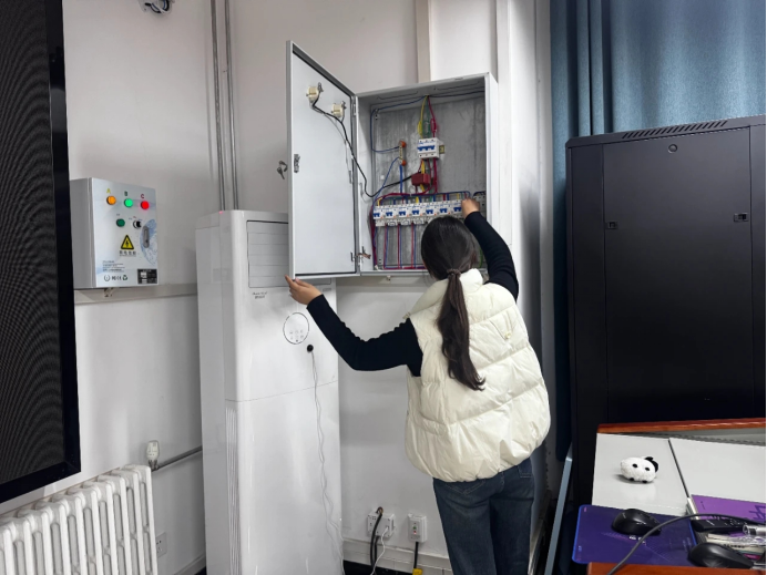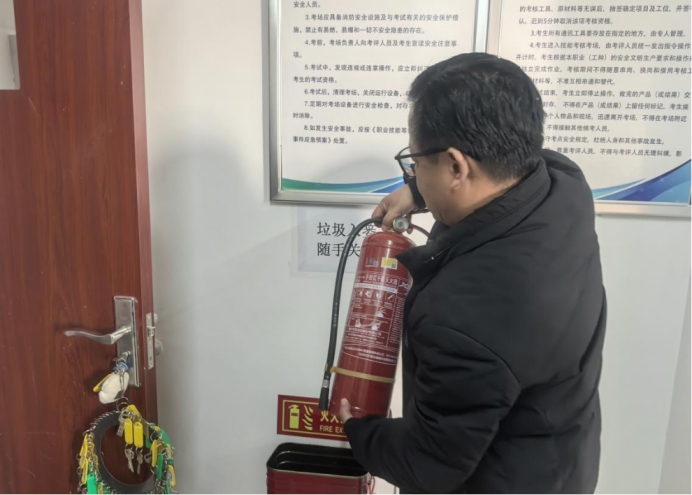 针对实训室安全问题,院长李勇带领教学秘书和实训室管理员,对学院实验室消防设施、电气线路、仪器设备用电负荷等进行逐一核查,重点排查违规动火、线路老化、超负荷运行等风险,确保实验教学安全规范。