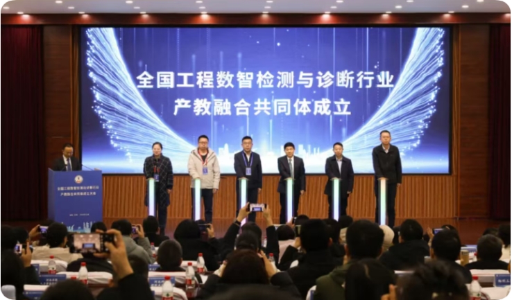 大会期间,全体参会代表审议并通过了《全国工程数智检测与诊断行业产教融合共同体章程》,同时宣读了理事长单位、常务副理事长单位、秘书长单位等一系列重要名单。我校凭借在相关领域的深厚积累与突出表现,成功当选为全国工程数智检测与诊断行业产教融合共同体常务副理事长单位。