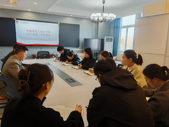 为持续筑牢育人工作根基,系统推进学生综合素质提升工程,2025年11月21日,智能建造与设计学院于F205会议室召开学生管理工作周例会。学院党总支书记宁晓冬、副书记张蓄金出席会议,党政办主任李慧杰、学工办主任史真,团总支书记王莹及全体专职辅导员参加会议。宁晓冬主持会议。