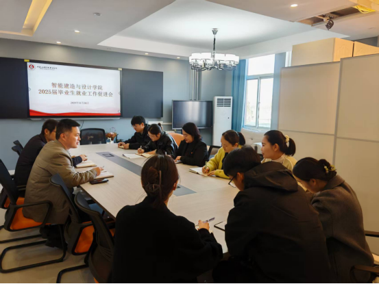 为精准推进2025届毕业生就业工作,靶向破解就业痛点难点,拓宽高质量就业路径,智能建造与设计学院专题召开2025届毕业生就业工作促进会。学院党总支书记宁晓冬、副书记张蓄金出席会议,党政办主任李慧杰、学工办主任史真,团总支书记王莹、全体专职辅导员参加会议。宁晓冬主持会议。