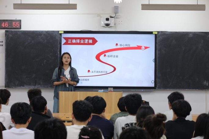 在互动答疑环节,同学们踊跃提问,围绕岗位适配性、实习安排、薪资结构、职业发展空间等关心的问题与企业代表深入交流。企业代表耐心细致地逐一解答,结合实际案例为同学们提供了针对性的职业规划建议,现场氛围热烈融洽。