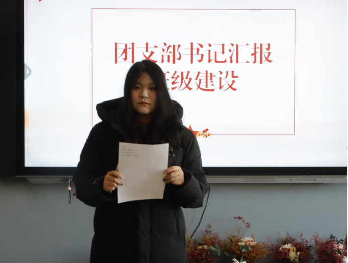 团支书汇报班级在思想引领、学风建设、专业实践等方面取得的阶段性成果,并结合园林专业特色,明确未来将以社会主义核心价值观为引领,持续深化党的创新理论学习。