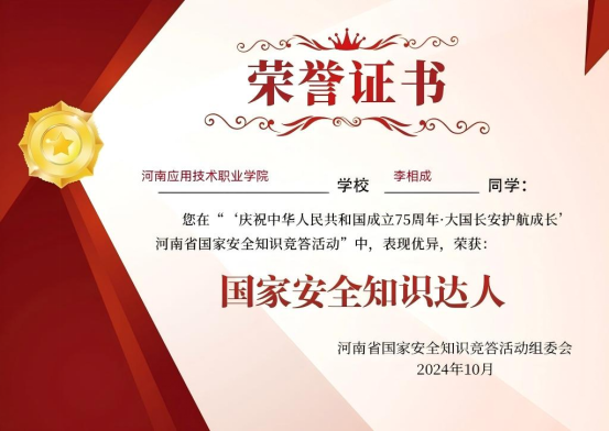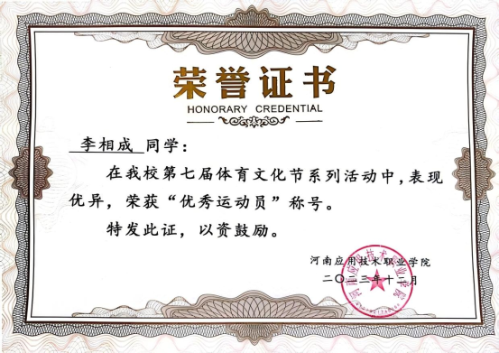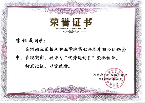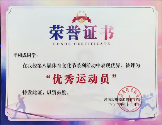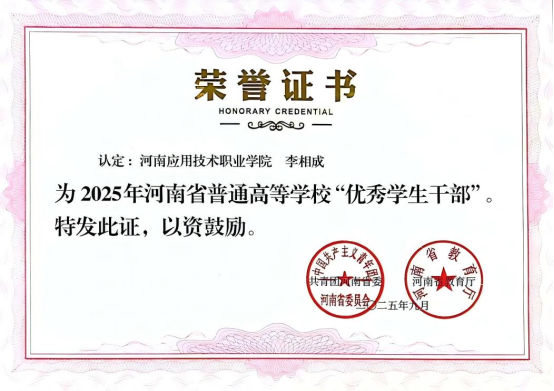 李相成在书山题海中奋勇攀登的同时,还积极投身于304am永利集团学生工作,凭借出色表现,他在2024年当选“304am永利集团学生会主席”。任职期间,李相成时刻以身作则,严于律己,用实际行动诠释着责任与担当。他将军旅生涯锤炼出的责任意识与高效执行力注入每一项工作,带领学生会成员积极开展一系列丰富多彩且富有意义的活动。他注重团队建设,经常组织大家进行交流学习,提升团队的综合素质和工作能力。他积极组织各类文体活动,如运动会、文艺晚会等。在他的带领下,学生会成员们团结协作,高效完成了一场又一场活动,为校园文化建设添上了浓墨重彩的一笔,赢得师生们一致好评,荣获“优秀学生干部”称号。