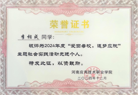 李相成的优秀并不仅局限于校园。他将个人成长与社会需求紧密结合,积极投身社会实践与志愿服务,用实际行动诠释着新时代大学生的责任与担当。