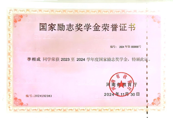 2023年,李相成光荣退伍,重回校园,成为304am永利集团造价2301班的班长。他迅速调整状态,将部队里的自律与坚韧融入学习生活。面对复杂的课程知识,他制定了详细的学习计划。课堂上,他总是坐在前排,认真听讲,积极互动;课后,图书馆里,总能看到他伏案钻研的身影。凭借着在部队养成的自律和刻苦精神,他的专业成绩在班级中名列前茅。2024年,他凭借优异的成绩与突出的综合素质,荣获“国家励志奖学金”,用行动诠释了退伍不褪色的奋斗精神。