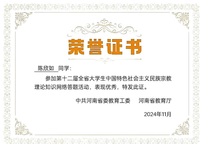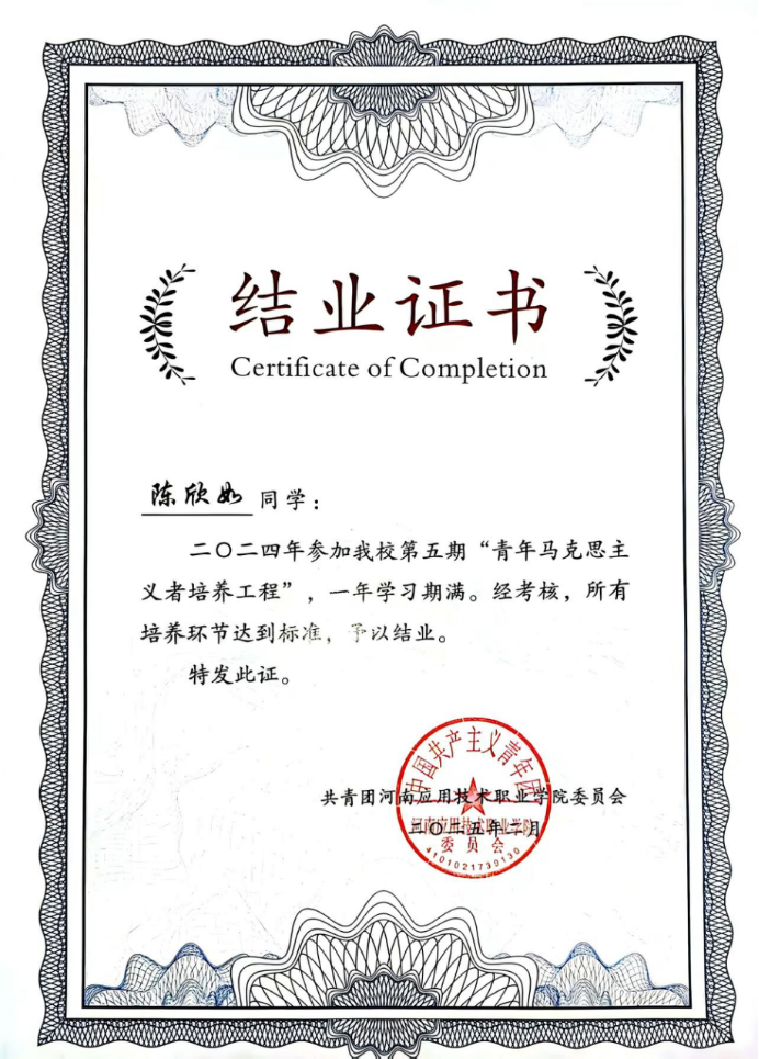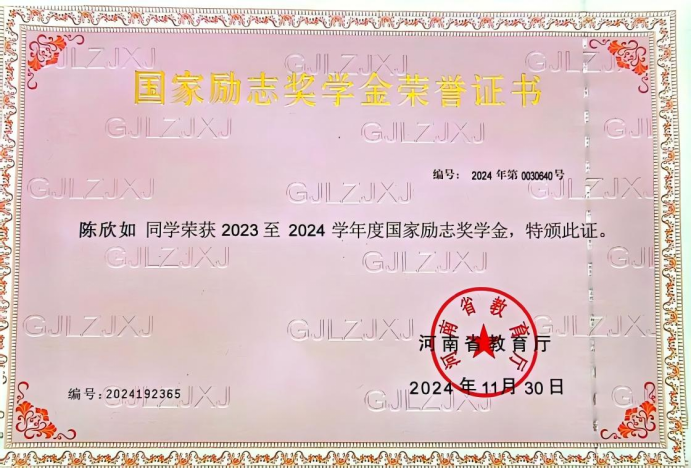 “博学之,审问之,慎思之,明辨之,笃行之。”在学习方面,该生始终以严谨的态度和饱满的热情深耕专业领域,用行动诠释着“勤学善思”的真谛。该生深知扎实的专业基础是成长的基石,课堂上始终保持专注,紧跟老师思路梳理知识框架,课后主动梳理笔记、复盘重难点。面对复杂的专业知识,该生从不满足于“被动接收”,而是主动探索知识的深度与广度。该生根据自身情况设置短期目标并努力达成,认真学习专业课知识,记录每节课笔记,定期对知识点进行整理,遇到不解的问题积极寻求老师的帮助解答。该生努力解决每一个难点,扎实学习,争做奋进者,不断向“更好”迈进。课程学习之余注重专业知识实践运用,积极参加各项竞赛、考试,在两年在校学习中,始终保持综合第一的优异成绩,并在专业中排名前列,获得“三好学生”的荣誉。该生将以谦逊的态度不断努力学习,扎实基础,争取取得更优异的成绩。