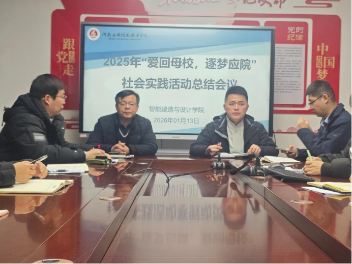 为系统复盘实践成效、提炼育人经验、凝聚奋进力量,2026年1月13日,智能建造与设计学院在办公楼417党员活动室召开了“爱回母校,逐梦应院”社会实践活动总结会议,学院党总支书记宁晓冬、院长李勇出席会议,部分教师代表和参加社会实践活动的学生参加会议,会议由李勇主持。
