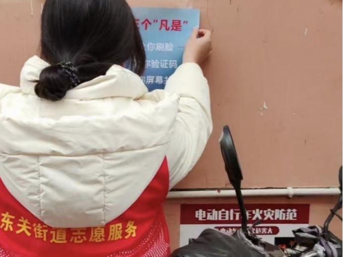 实践内容:2026年1月30日下午14:30-16:00在河南省南阳市宛城区东关街道办事处,我前往市区参与反诈宣传志愿活动。活动伊始,我们在指定点位领取反诈传单、宣传手册等物料,随后分组前往周边社区、商超及沿街商铺开展宣传。我和队友们在社区公告栏、单元楼道、商超出入口等人员密集处仔细张贴反诈传单,同时主动为驻足的居民和商户讲解刷单返利、虚假购物等高发诈骗手段的识别方法,提醒大家提高警惕、保护好个人信息,遇到可疑情况及时报警。