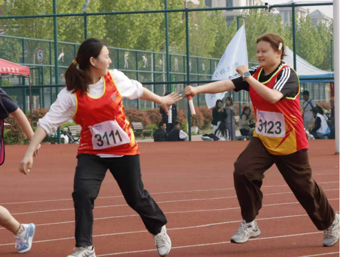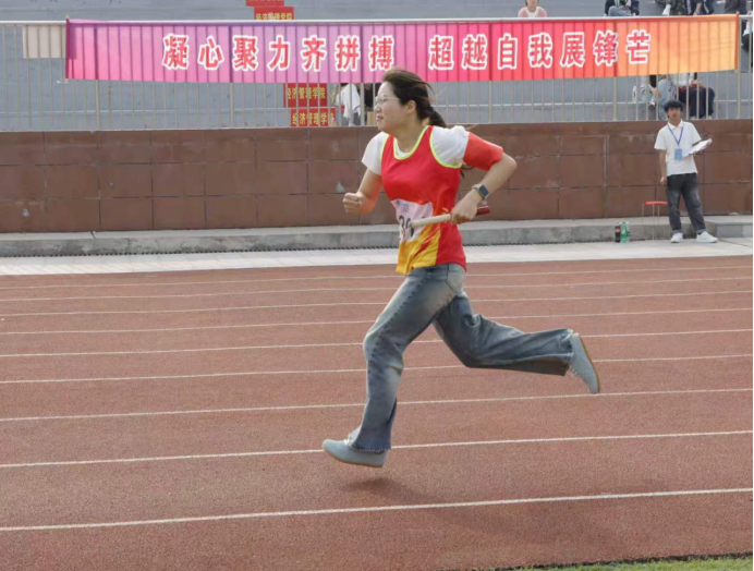 迎面奔跑,接力同心,选手们步伐轻快、交接精准,用团结与速度展现集体力量。