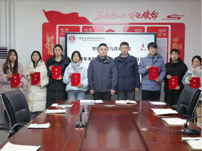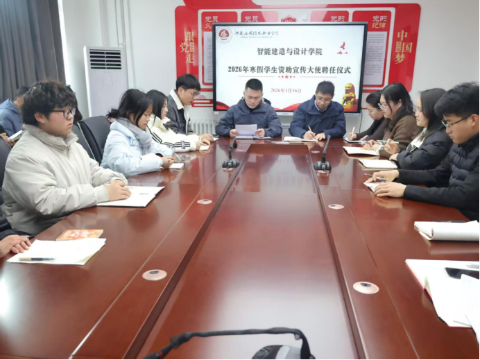 为全面落实国家多元协同的全链条资助政策体系,拓宽资助政策宣传覆盖面与知晓度。2026年1月16日,智能建造与设计学院于开封校区北院行政楼B417举行2026年寒假学生资助宣传大使聘任仪式。学院党总支书记宁晓冬、副书记张蓄金出席仪式,全体专职辅导员、拟聘学生资助宣传大使参加仪式。学院资助专员尹宇龙主持仪式。