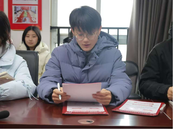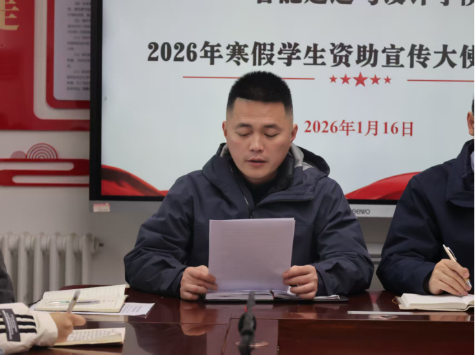 尹宇龙简要介绍了本次活动开展的背景和目的,即通过选拔受助优秀学生代表,组建宣传大使队伍,依托寒假返乡契机,走进乡村、深入基层、回访母校,开展资助政策宣传与感恩教育实践活动,让资助暖阳惠及更多需要帮助的学子。