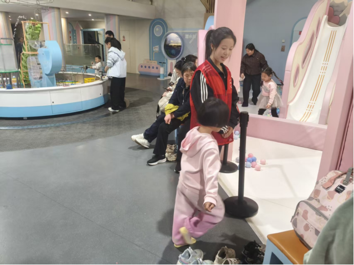 活动中,志愿者们分工协作、各尽其责,有序开展秩序维护、操作指导、安全陪护等工作。面对孩子们好奇的提问,志愿者们温柔耐心解答;看到小朋友操作装置遇到困难,志愿者们手把手引导演示,将科学知识融入趣味体验;同时时刻关注现场情况,细心守护孩子们的游玩安全,让他们能在轻松的氛围中感受科学魅力,在玩乐中爱上探索。