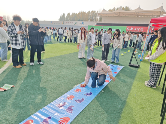 活动当天操场上人头攒动,智能建造与设计学院的“手忙脚乱”活动尤为精彩。比赛伊始,有的同学反应敏捷、动作连贯,有的则频频失误,在手忙脚乱中闹出不少趣事,却始终相互鼓励、调整节奏。这场游戏既有效锻炼了大家的身体协调性与反应能力,更在欢乐互动中拉近了彼此距离,让同学们在轻松氛围中舒缓了身心。除此之外,现场各摊位也秩序井然,心理健康科普、专家咨询、VR解压等多元区域同步为同学们提供丰富体验,大家通过完成各类任务收集印章、累积成就感,集齐十枚印章还能参与幸运大抽奖,整场活动亮点纷呈。
